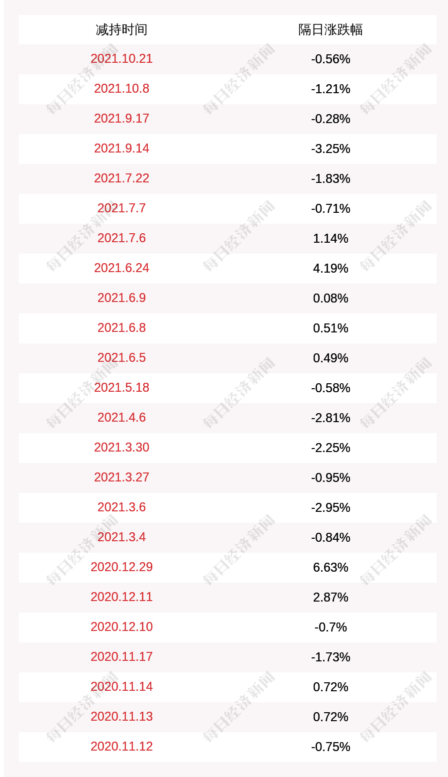 3. 金域医学上次发布减持公告是2021年10月21日,第二个交易日下跌0.56%,金域医学近一年共发布25次减持类公告。更多关键信息,请搜索“道达号”。