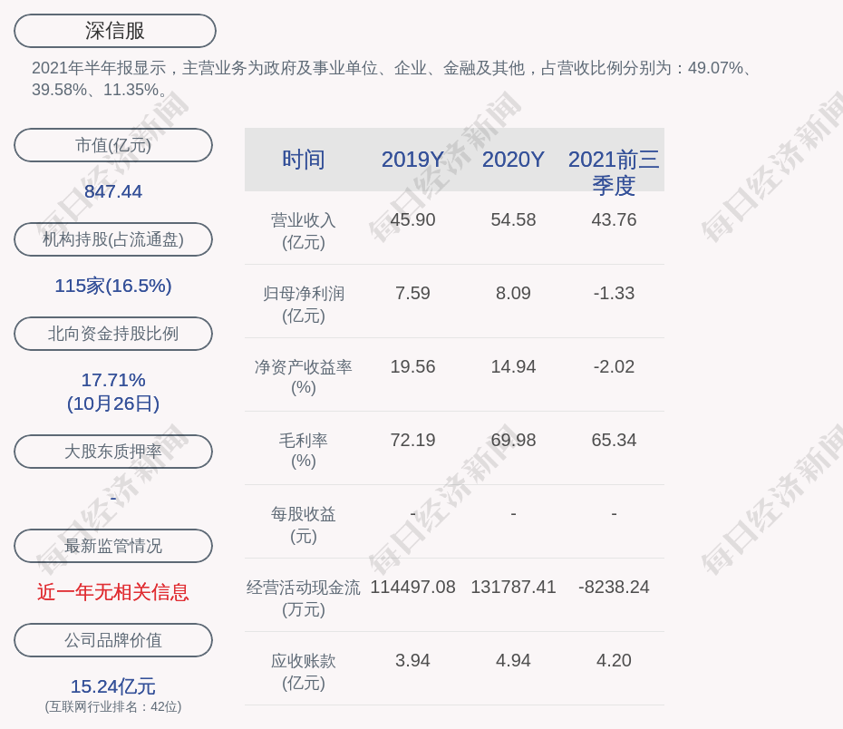 2021年半年报显示,深信服的主营业务为政府及事业单位、企业、金融及其他,占营收比例分别为:49.07%、39.58%、11.35%。
