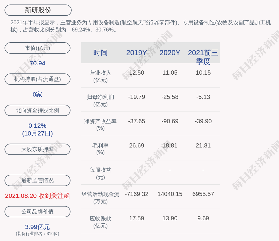 2021年半年报显示,新研股份的主营业务为专用设备制造(航空航天飞行器零部件)、专用设备制造(农牧及农副产品加工机械),占营收比例分别为:69.24%、30.76%。