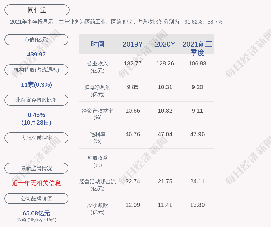 2021年半年报显示,同仁堂的主营业务为医药工业、医药商业,占营收比例分别为:61.62%、58.7%。
