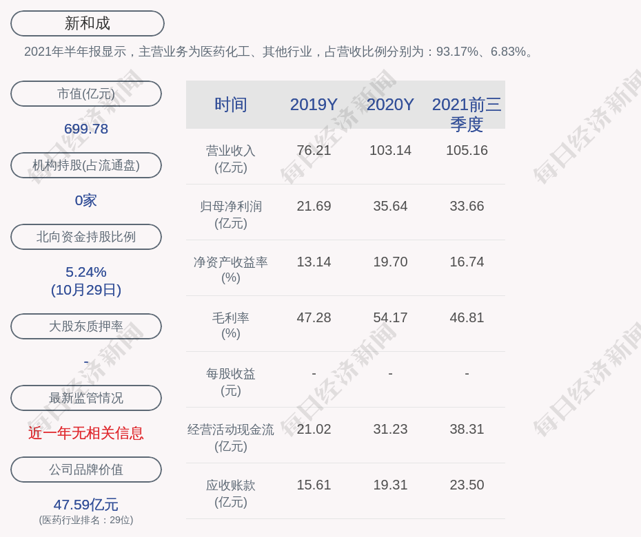 2021年半年报显示,新和成的主营业务为医药化工、其他行业,占营收比例分别为:93.17%、6.83%。