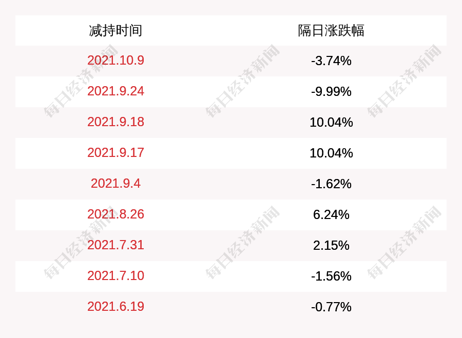3. 晶科科技上次发布减持公告是2021年10月09日,第二个交易日下跌3.74%,晶科科技近一年共发布10次减持类公告。更多关键信息,请搜索“道达号”。