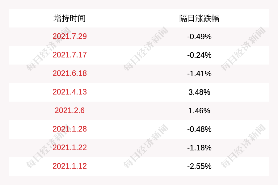 3. 东百集团上次发布增持公告是2021年07月29日,第二个交易日下跌0.49%,东百集团近一年共发布9次增持类公告。更多关键信息,请搜索“道达号”。