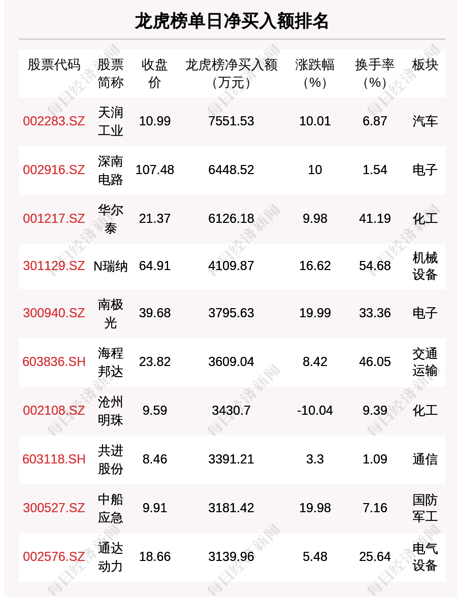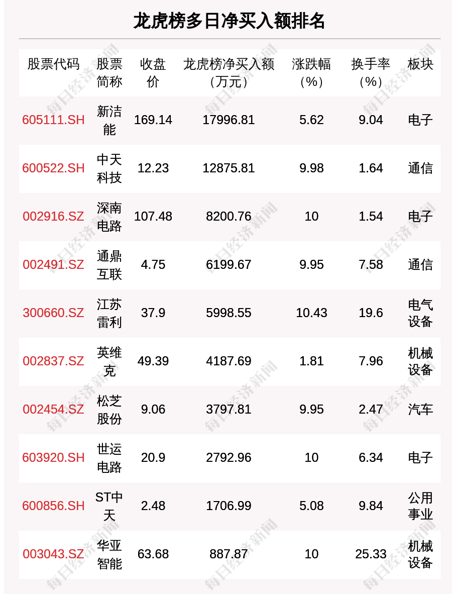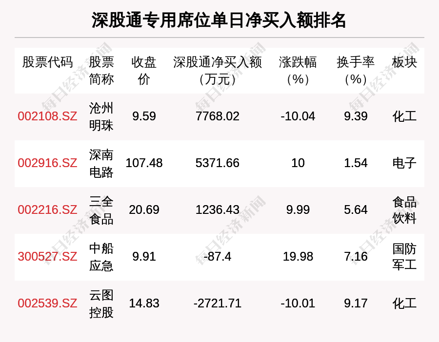在龙虎榜中,涉及深股通专用席位的个股有5只,沧州明珠的深股通专用席位净买入额最大,净买入7768.02万元。