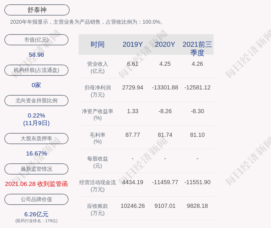 2020年年报显示,舒泰神的主营业务为产品销售,占营收比例为:100.0%。