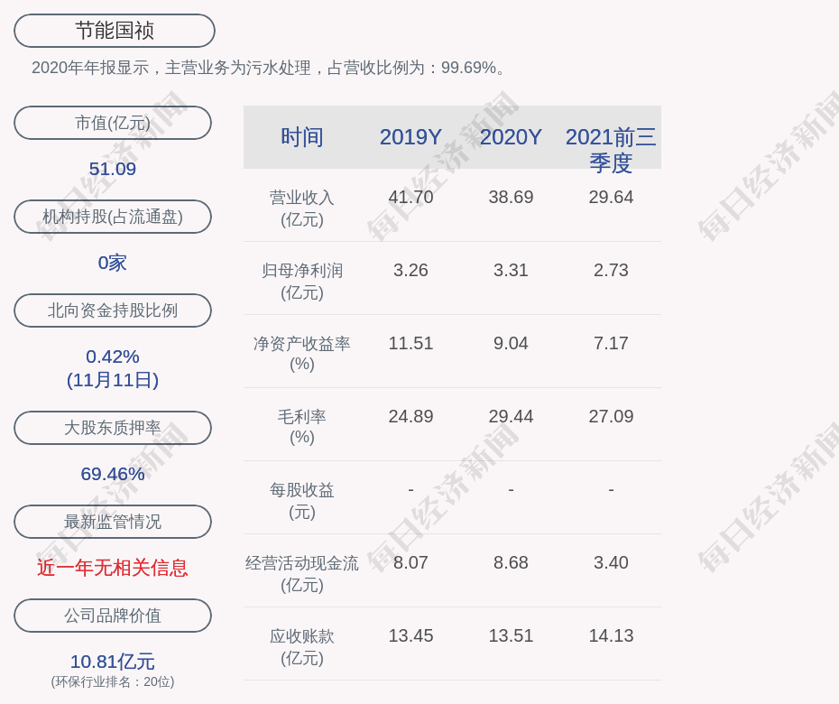 2020年年报显示,节能国祯的主营业务为污水处理,占营收比例为:99.69%。