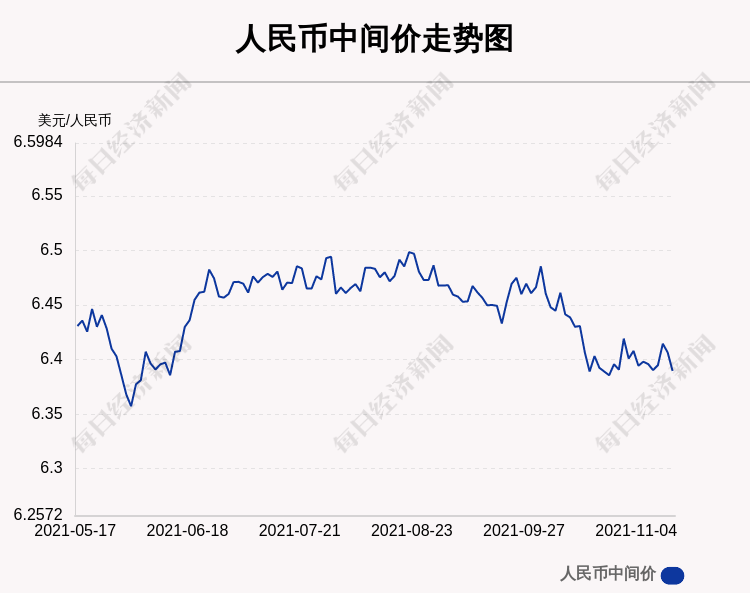 每经AI快讯:北京时间11月15日09:15,人民币中间价报6.3896,上调169点,上一交易日中间价报6.4065,在岸人民币上一交易日收报6.3902。