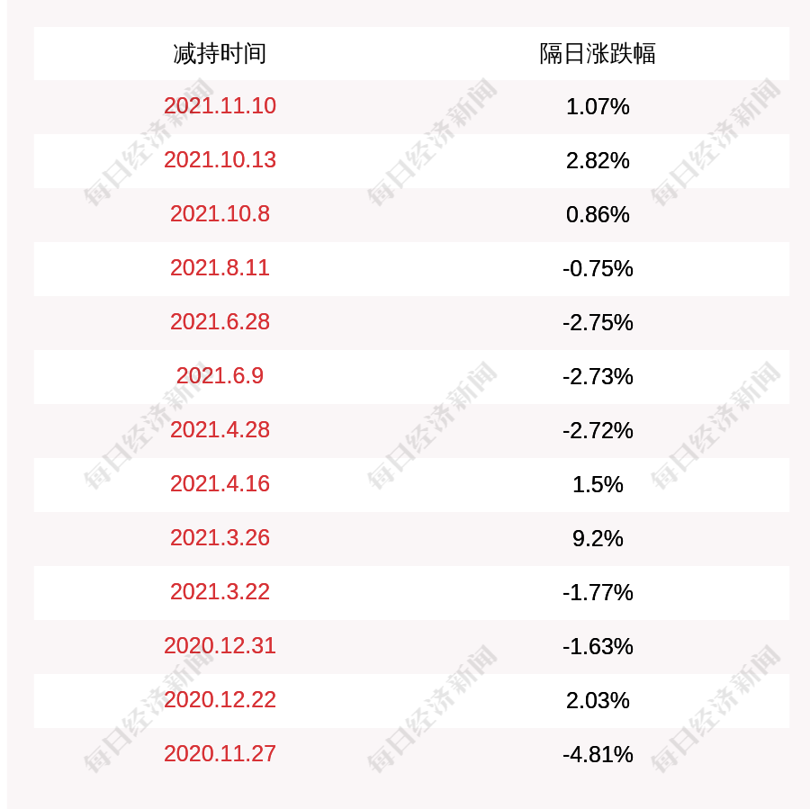 2. 康跃科技上次发布减持公告是2021年11月10日,第二个交易日上涨1.07%,康跃科技近一年共发布14次减持类公告。更多关键信息,请搜索“道达号”。