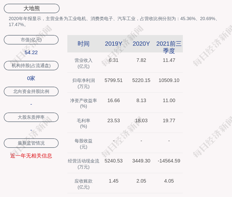 2020年年报显示,大地熊的主营业务为工业电机、消费类电子、汽车工业,占营收比例分别为:45.36%、20.69%、17.47%。