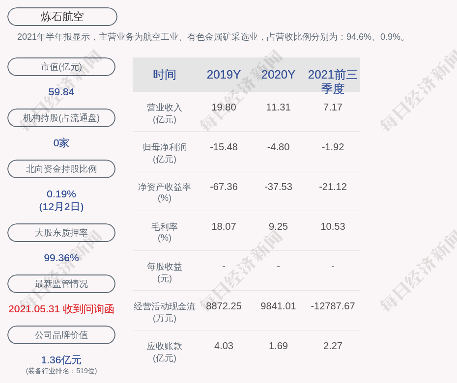 2021年半年报显示,炼石航空的主营业务为航空工业、有色金属矿采选业,占营收比例分别为:94.6%、0.9%。