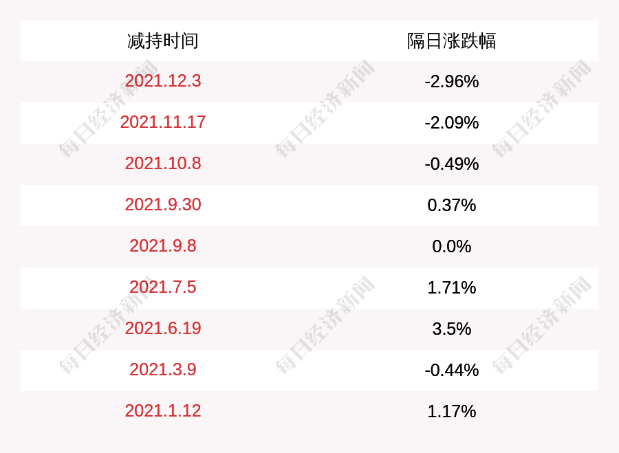 2. 海立股份上次发布减持公告是2021年12月03日,第二个交易日下跌2.96%,海立股份近一年共发布10次减持类公告。