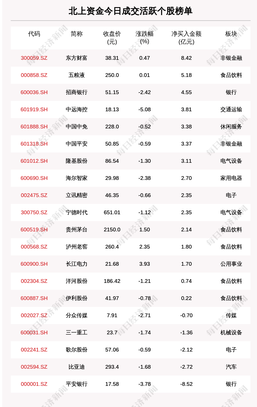 12月14日,北上资金成交活跃个股榜单中,净买入个股共15只,金额最多的是东方财富(300059.SZ,收盘价:38.31元),净买入8.422亿元;净卖出个股共5只,金额最多的是平安银行(000001.SZ,收盘价:17.58元),净卖出8.523亿元。