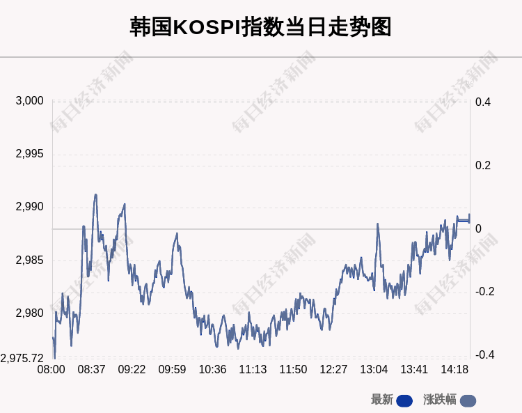 每经AI快讯:北京时间12月15日14:00,韩国KOSPI指数收盘上涨1.44点,涨幅为0.05%,报2989.39点。
