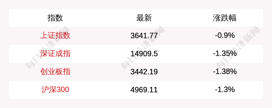 每经AI快讯:北京时间12月17日11:30,上证指数早盘下跌33.25点,跌幅为0.9%,报收3641.77点,成交额3088.37亿元;深证成指下跌203.31点,跌幅为1.35%,报收14909.5点,成交额4217.39亿元;创业板指下跌48.26点,跌幅为1.38%,报收3442.19点,成交额1826.42亿元;沪深300下跌65.62点,跌幅为1.3%,报收4969.11点,成交额1706.82亿元。