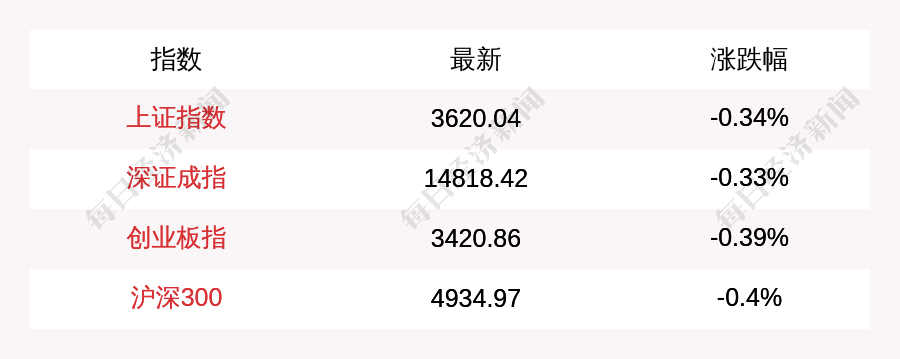 每经AI快讯:北京时间12月20日9:30,上证指数开盘跌12.32点,跌幅为0.34%,报3620.04点;深证成指开盘下跌49.13点,跌幅为0.33%,报14818.42点;创业板指开盘下跌13.48点,跌幅为0.39%,报3420.86点;沪深300开盘下跌19.79点,跌幅为0.4%,报4934.97点。
