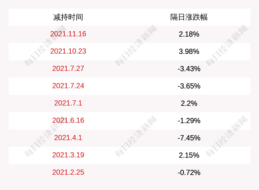 2. 贝肯能源上次发布减持公告是2021年11月16日,第二个交易日上涨2.18%,贝肯能源近一年共发布10次减持类公告。
