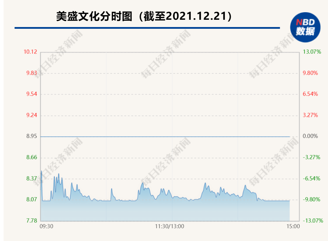 12月21日,8天7板的美盛文化(002699,SZ)今早大幅低开逾8%后,两分钟股价就闪崩跌停了,盘中多单屡次翘板。