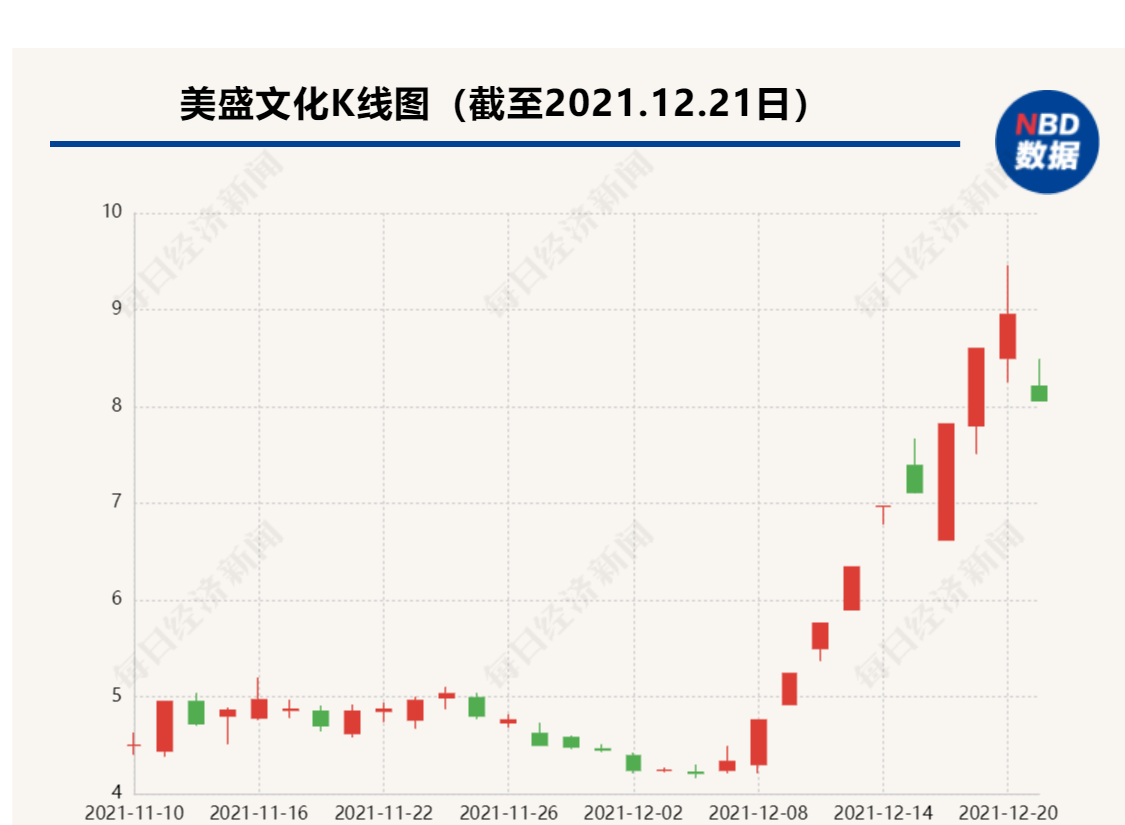 消息面上,12月20日,深交所向美盛文化下发关注函。其中提及,美盛文化的股票价格自12月8日以来连续多日大幅上涨,分别于12月9日、12月14日、12月17日达到股票交易异常波动标准。