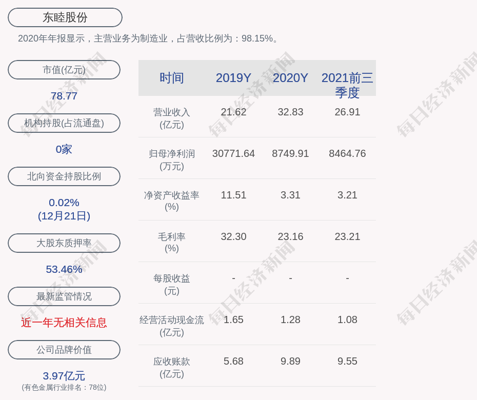 2020年年报显示,东睦股份的主营业务为制造业,占营收比例为:98.15%。
