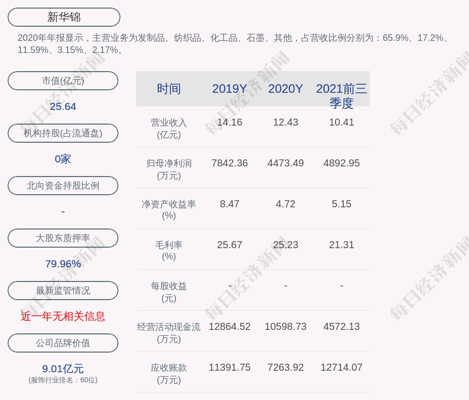 2020年年报显示,新华锦的主营业务为发制品、纺织品、化工品、石墨、其他,占营收比例分别为:65.9%、17.2%、11.59%、3.15%、2.17%。