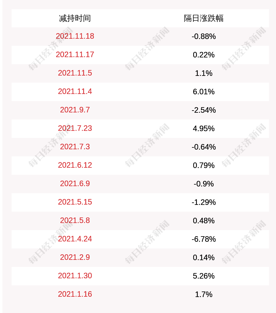3. 太平鸟上次发布减持公告是2021年11月18日,第二个交易日下跌0.88%,太平鸟近一年共发布16次减持类公告。