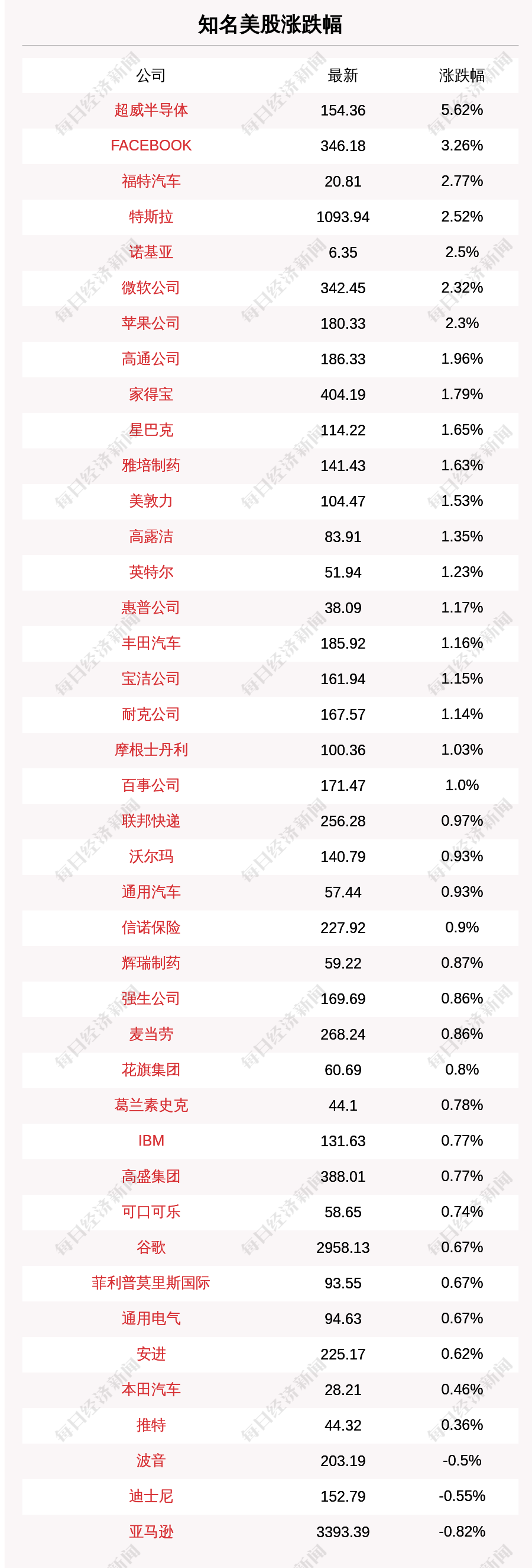 每经AI快讯:北京时间12月28日05:00,知名美股中超威半导体、FACEBOOK、福特汽车、特斯拉、诺基亚涨幅居前,收盘分别上涨5.62%、3.26%、2.77%、2.52%、2.5%。亚马逊、迪士尼、波音跌幅居前,收盘分别下跌0.82%、0.55%、0.5%。