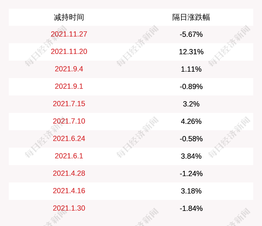 2. 聚辰股份上次发布减持公告是2021年11月27日,第二个交易日下跌5.67%,聚辰股份近一年共发布12次减持类公告。