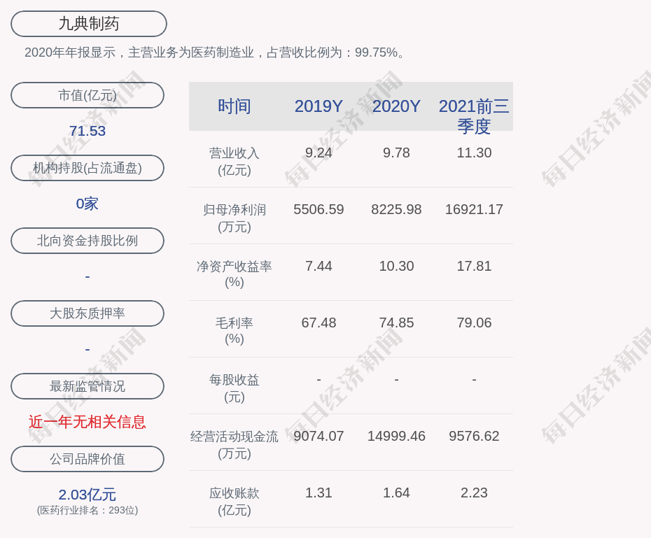 1. 近30日内无机构对九典制药进行调研。