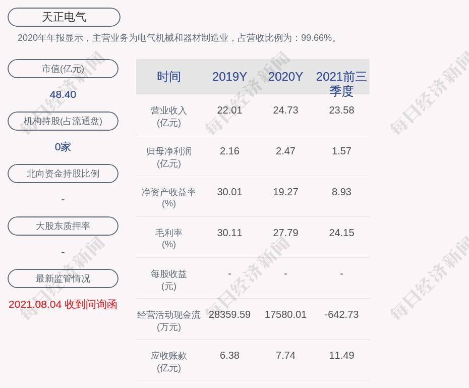 1. 近30日内无机构对天正电气进行调研;