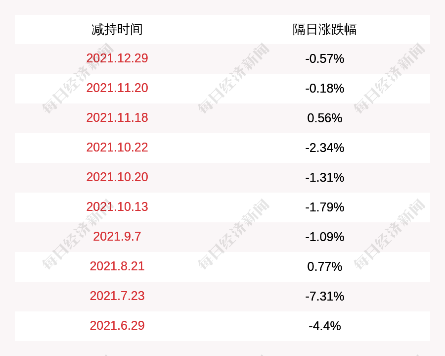 3. 甘李药业上次发布减持公告是2021年12月29日,第二个交易日下跌0.57%,甘李药业近一年共发布11次减持类公告。