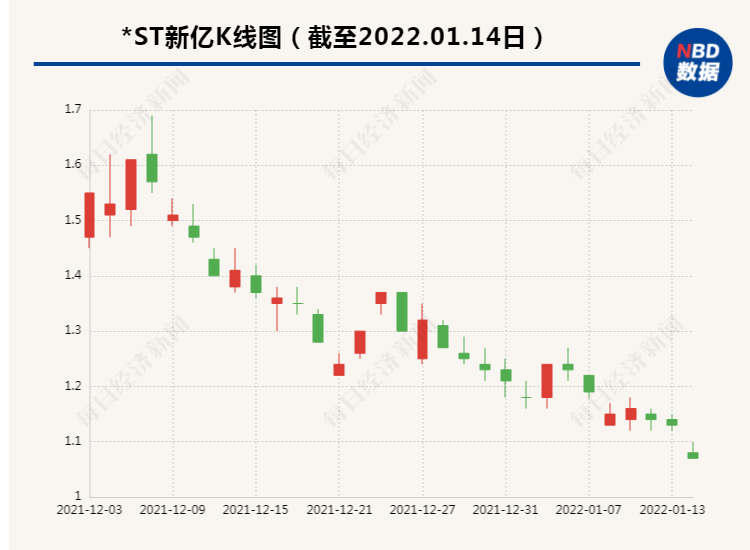 市场层面,*ST新亿1月14日收报1.07元,跌5.31%,总市值为15.95亿元。
