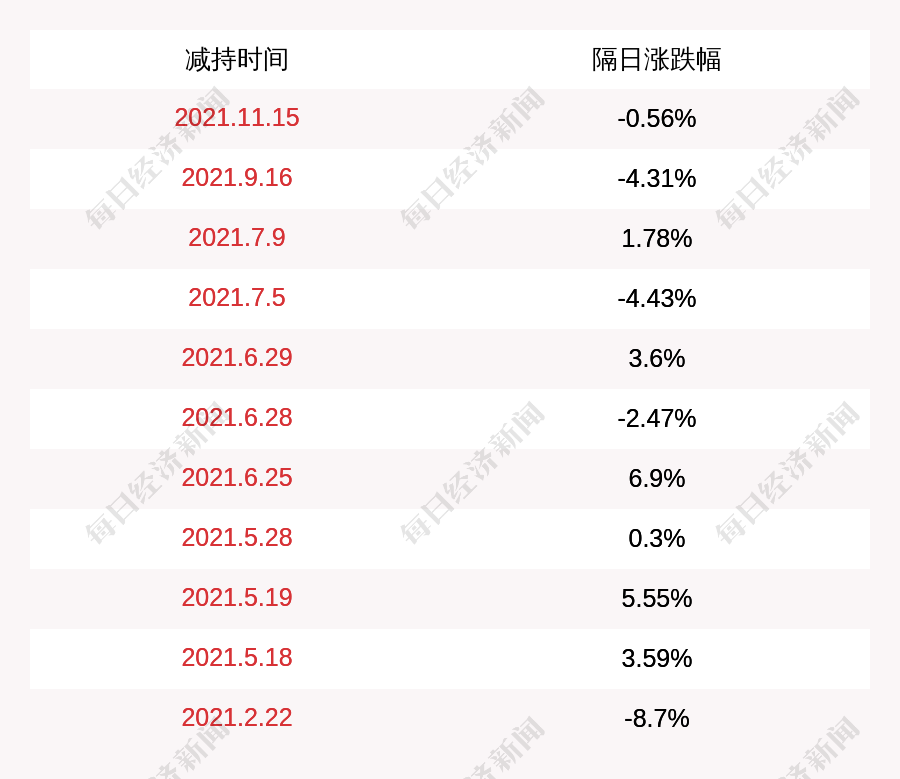 3. 锐科激光上次发布减持公告是2021年11月15日,第二个交易日下跌0.56%,锐科激光近一年共发布12次减持类公告。