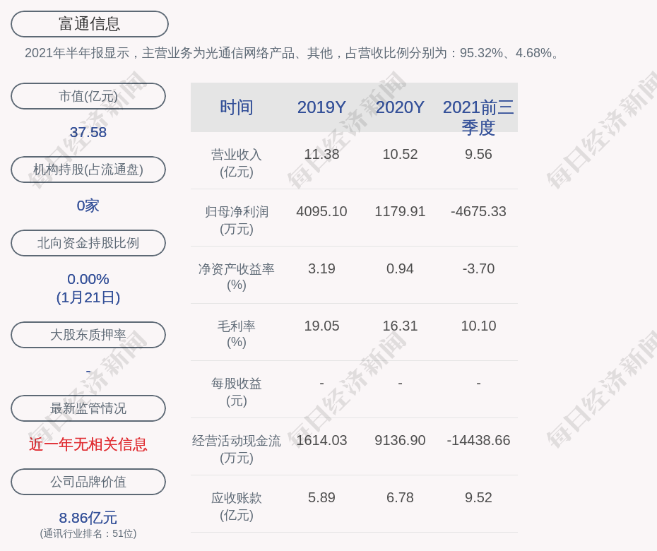 2021年半年报显示,富通信息的主营业务为光通信网络产品、其他,占营收比例分别为:95.32%、4.68%。