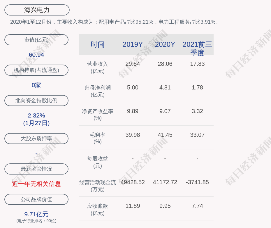 1. 海兴电力近30日内北向资金持股量减少47.93万股,占流通股比例减少0.09%;
