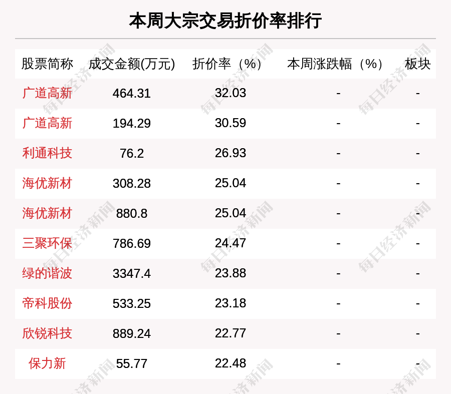折价交易方面,本周有135笔大宗交易折价率超过10%。