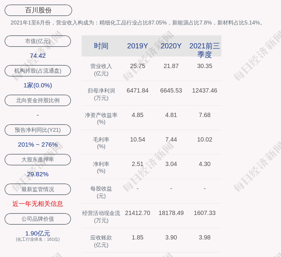 2021年1至6月份,百川股份的营业收入构成为:精细化工品行业占比87.05%,新能源占比7.8%,新材料占比5.14%。