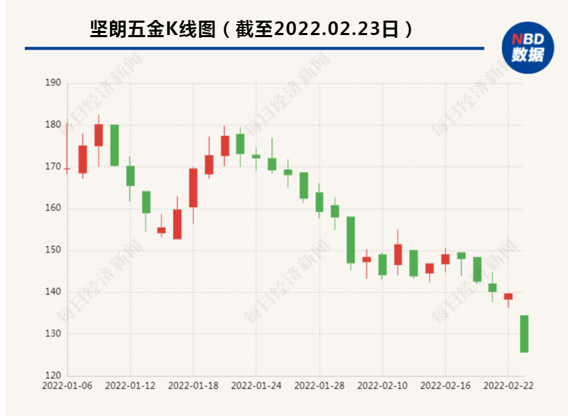 2月23日,坚朗五金(002791)开盘一分钟闪崩跌停。截至发稿,坚朗五金报125.69元/股,最新市值404.1亿元。