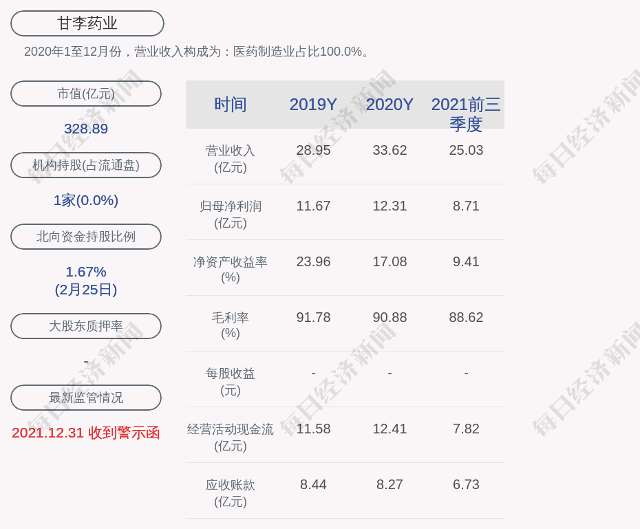 每经AI快讯,甘李药业(SH 603087,收盘价:58.57元)2月28日晚间发布公告称,公司限售股份约360.83万股将于2022年3月4日解禁并上市流通,占公司总股本比例为0.64%。
