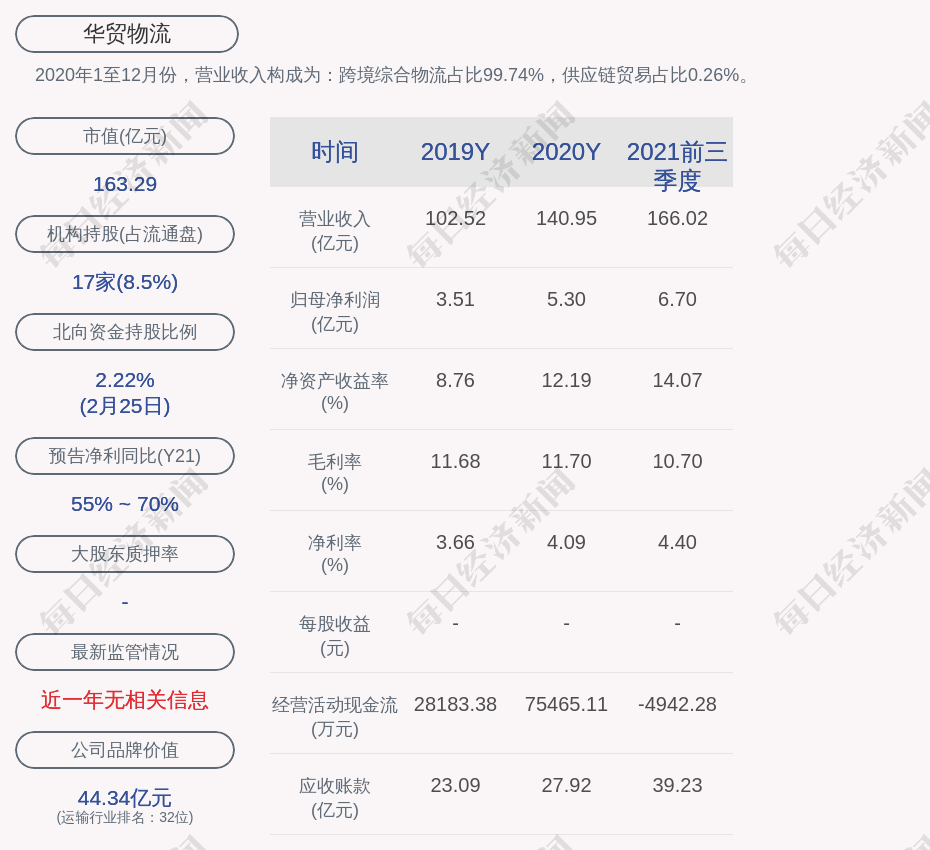 1. 华贸物流近30日内北向资金持股量减少265.28万股,占流通股比例减少0.20%;