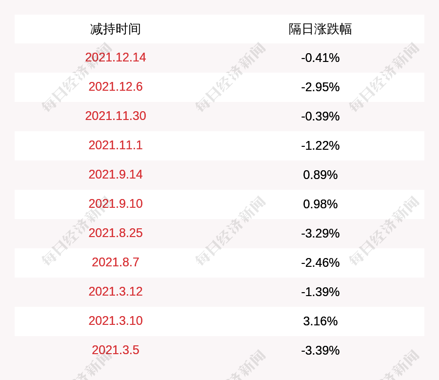 2. 艾比森上次发布减持公告是2021年12月14日,第二个交易日下跌0.41%,艾比森近一年共发布12次减持类公告。