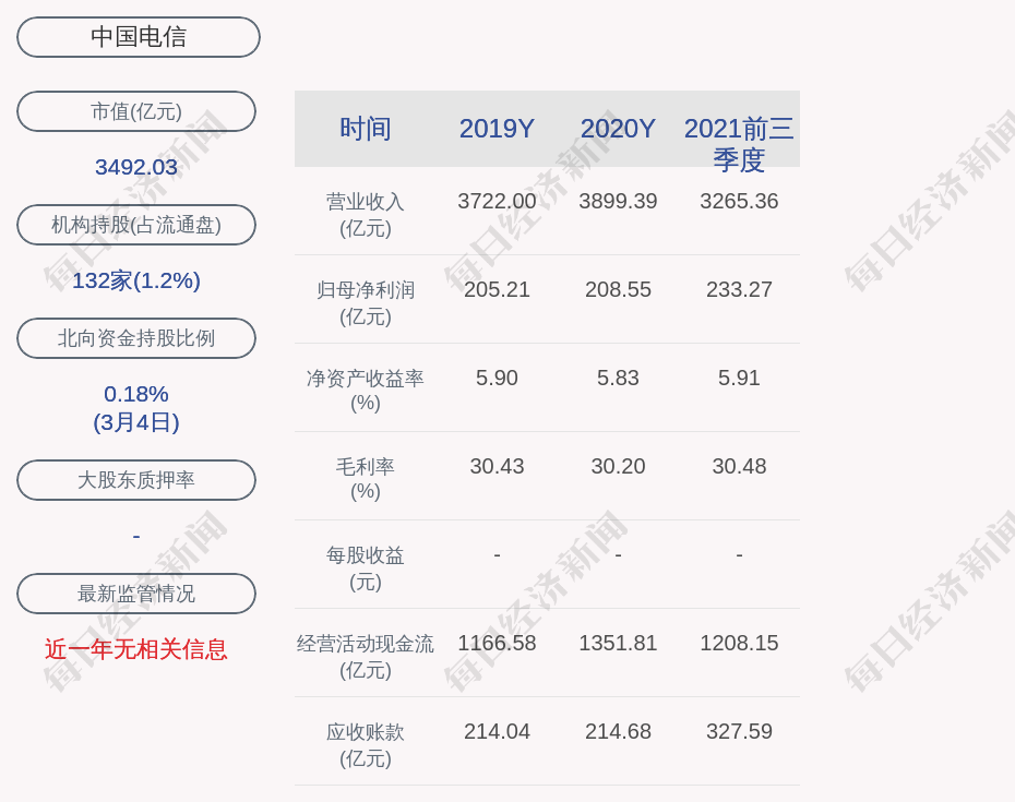 1. 中国电信近30日内北向资金持股量减少104.86万股,占流通股比例减少0.06%;