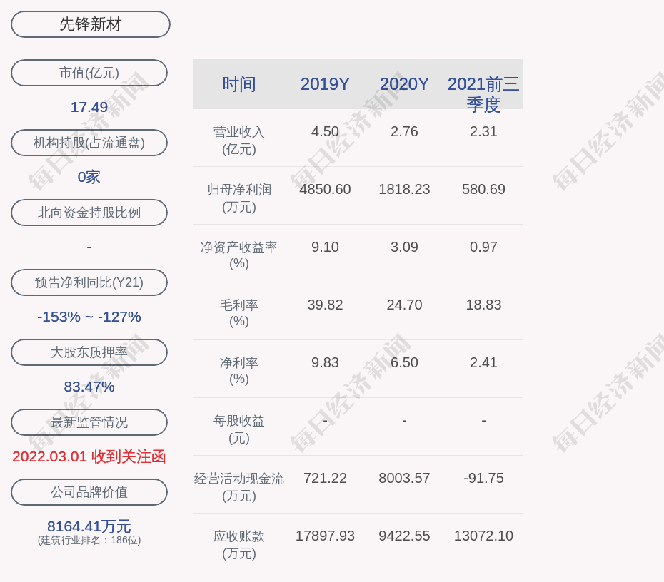 每经AI快讯,先锋新材(SZ 300163,收盘价:3.69元)3月10日晚间发布公告称,本次提供担保后,上市公司及控股子公司的担保额度总金额是3.94亿元人民币,提供担保总余额是3.94亿元,占上市公司最近一期经审计净资产的65.89%,上市公司及控股子公司对合并报表外单位提供的担保总余额是3.94亿元,占上市公司最近一期经审计净资产的65.89%。