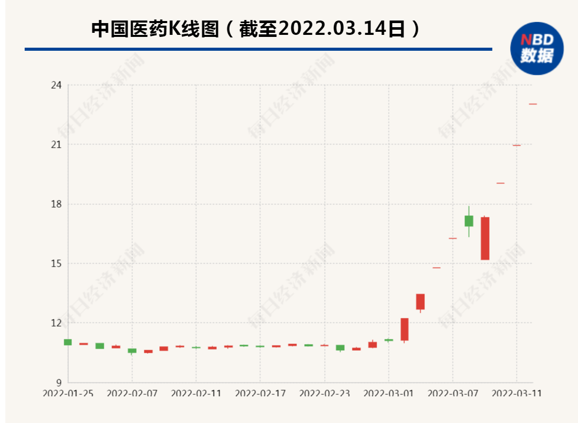 盘面上,14日,中国医药再次一字涨停收获三连板,截止14日收盘,公司股价涨9.99%,收于23.02元/股,总市值达246亿元。