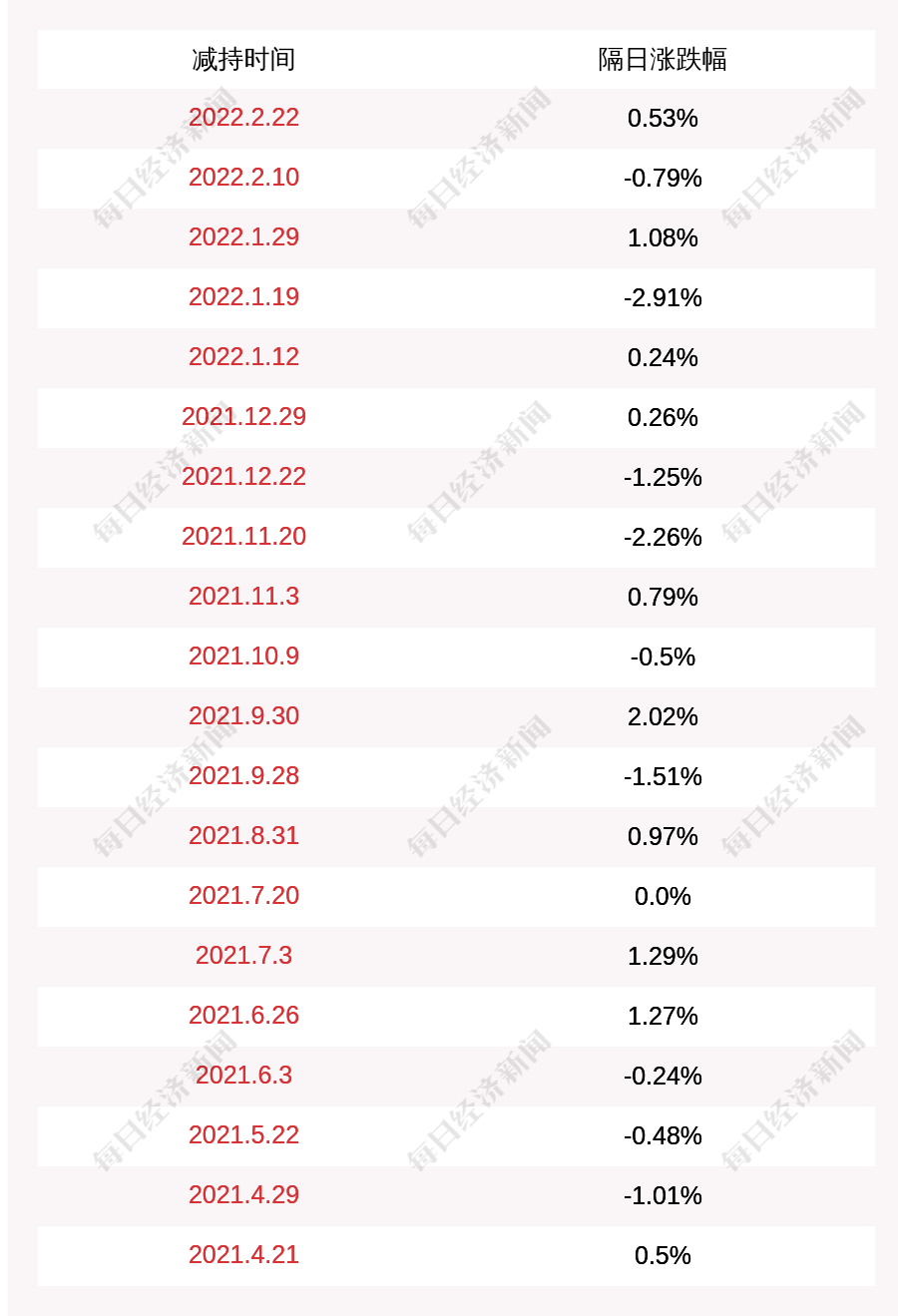 2. 梦洁股份上次发布减持公告是2022年02月22日,第二个交易日上涨0.53%,梦洁股份近一年共发布21次减持类公告。