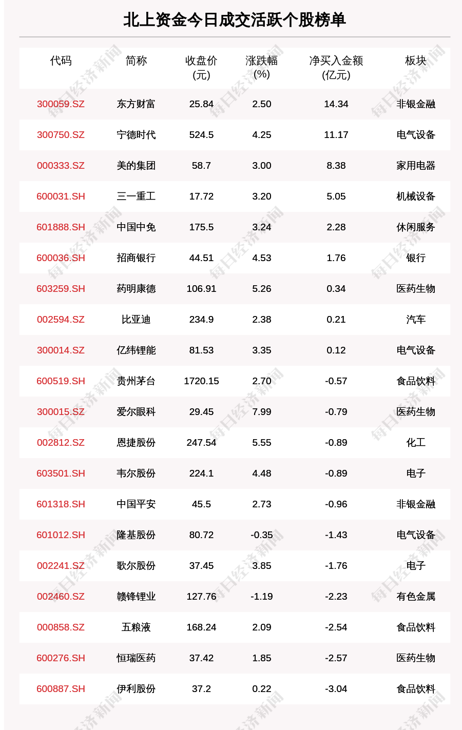 3月17日,北上资金成交活跃个股榜单中,净买入个股共9只,金额最多的是东方财富(300059.SZ,收盘价:25.84元),净买入14.345亿元;净卖出个股共11只,金额最多的是伊利股份(600887.SH,收盘价:37.2元),净卖出3.037亿元。