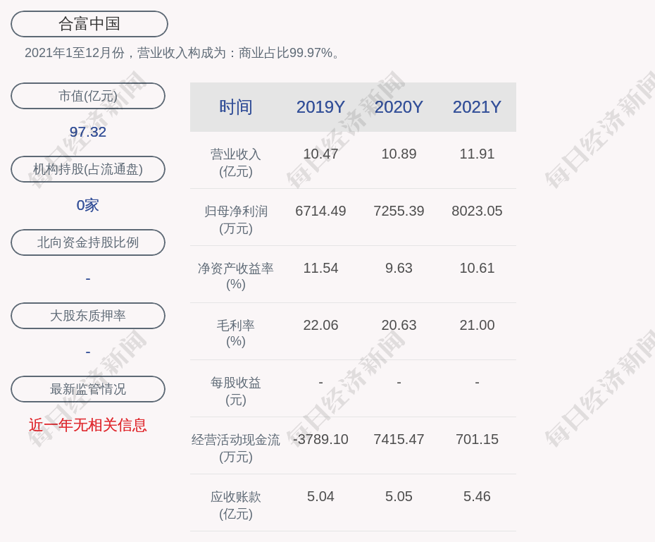 2021年1至12月份,合富中国的营业收入构成为:商业占比99.97%。