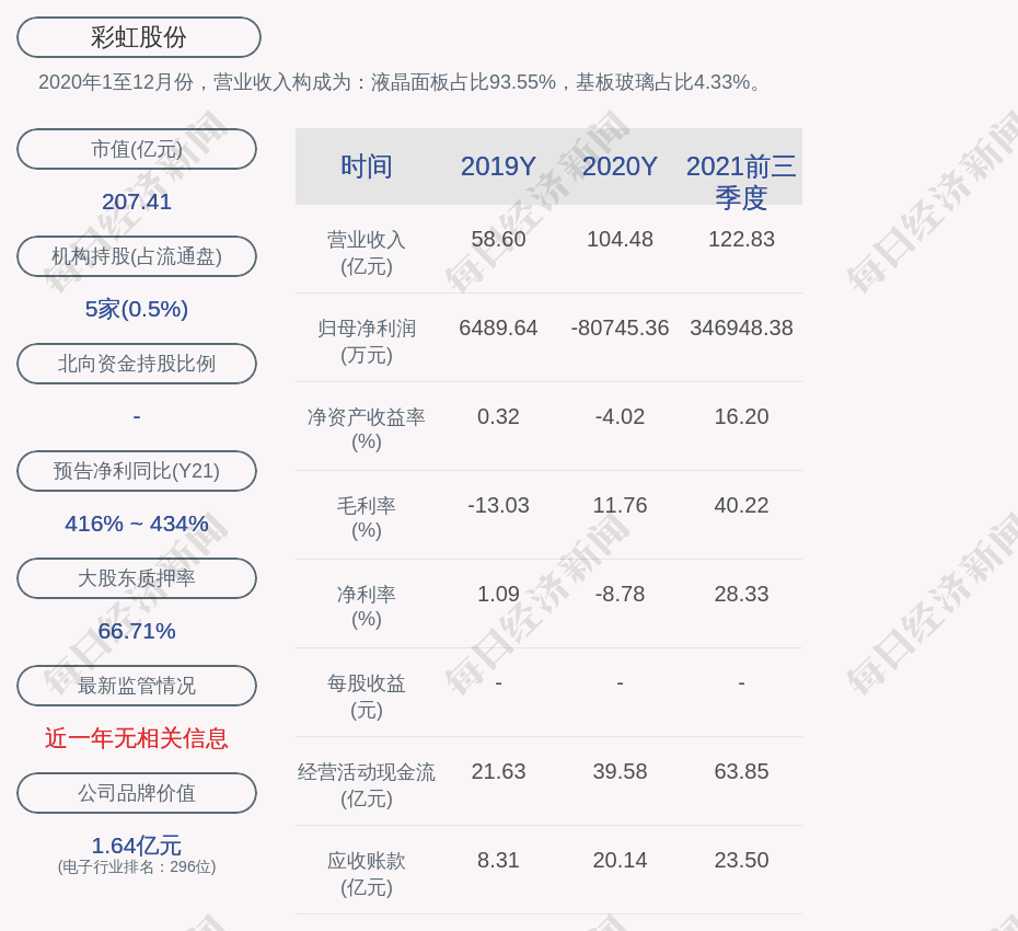 2020年1至12月份,彩虹股份的营业收入构成为:液晶面板占比93.55%,基板玻璃占比4.33%。