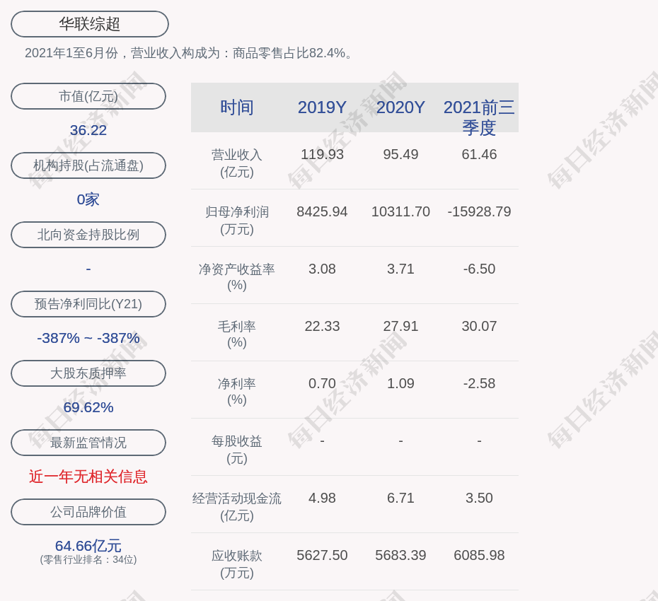 2021年1至6月份,华联综超的营业收入构成为:商品零售占比82.4%。