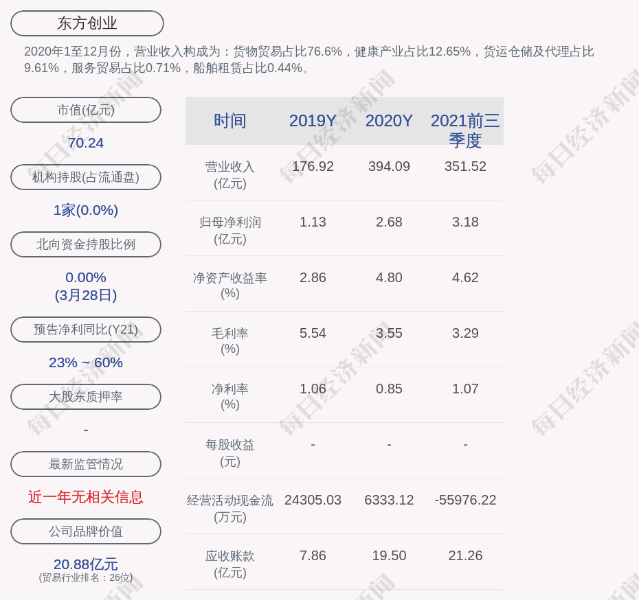 1. 东方创业近30日内北向资金持股量未发生变化;