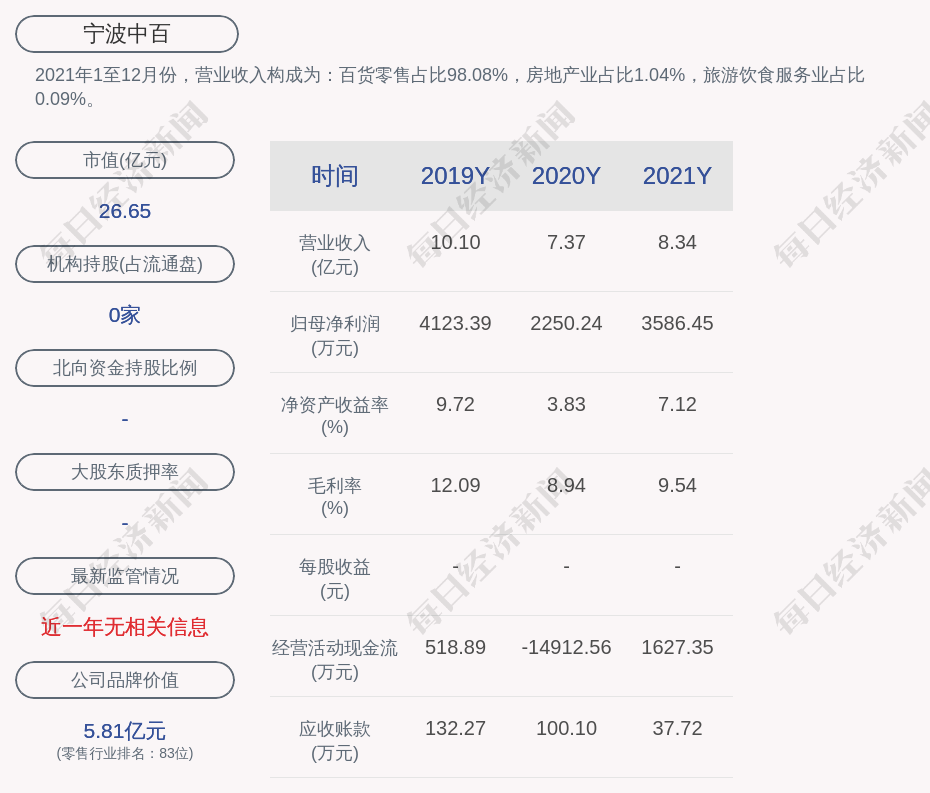 1. 近30日内无机构对宁波中百进行调研。